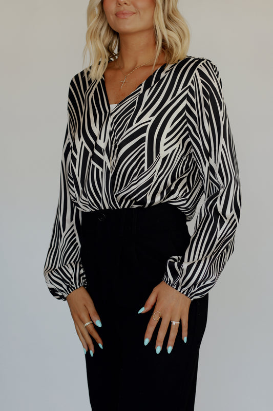 Katy Surplice Bodysuit- Black/White