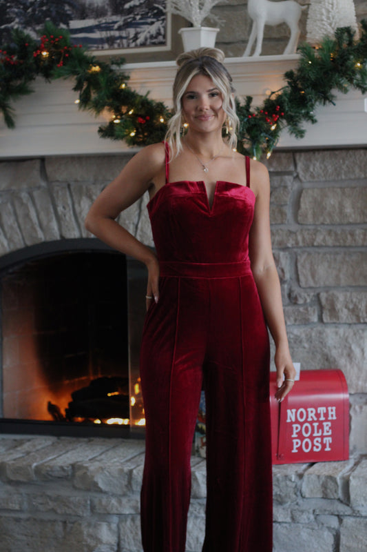 Last Christmas Velvet Jumpsuit- Burgundy | TALL