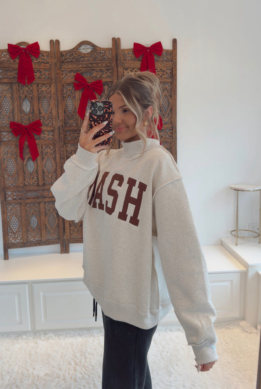 NASH Embroidered Mock Neck Sweatshirt- Gray/Brown