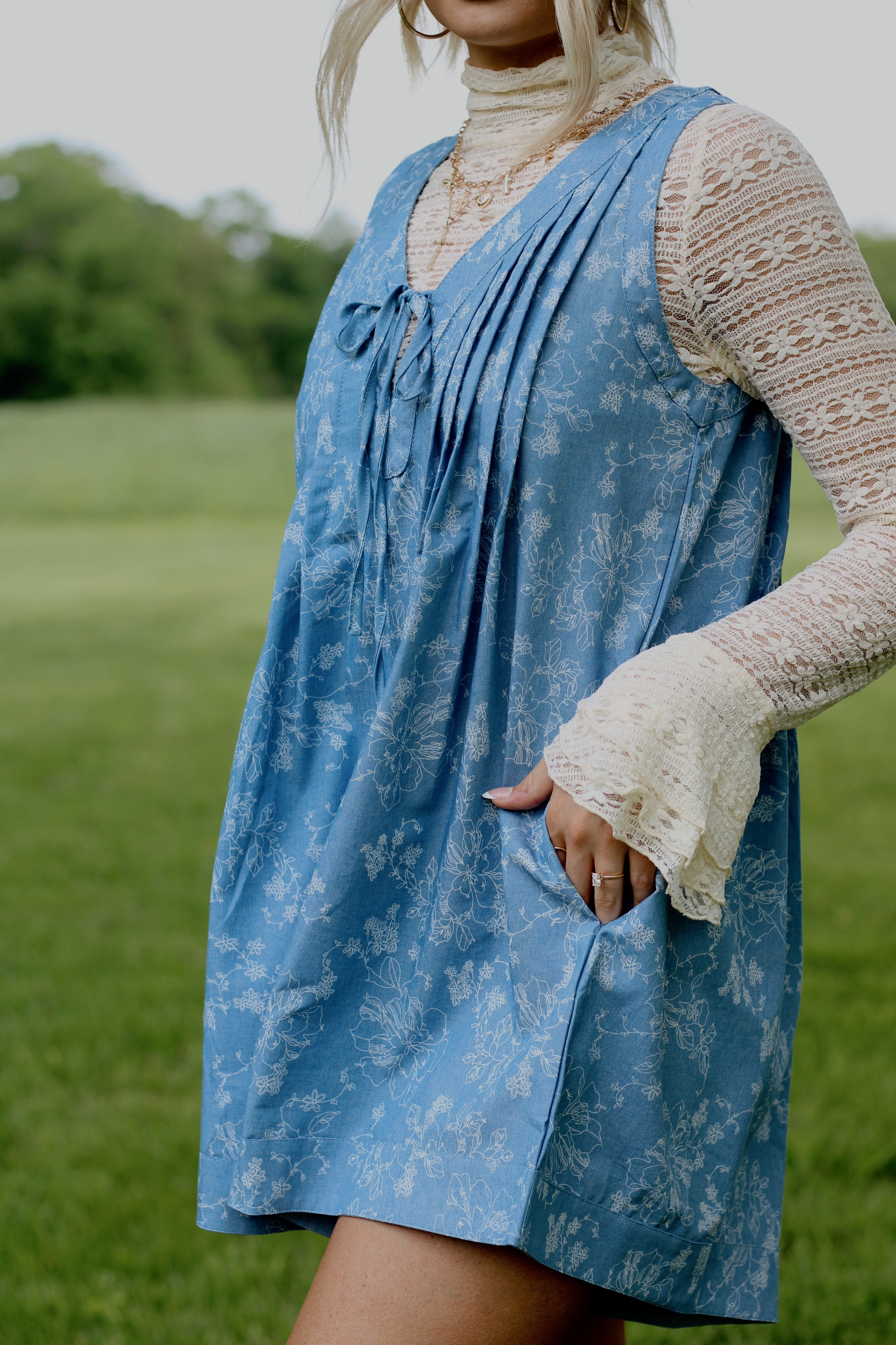 Our all time best selling "All Your'n" Romper now with a dainty floral design! This romper features a back zipper closure, v neck front tie, pintuck detailing, and a loose fit.