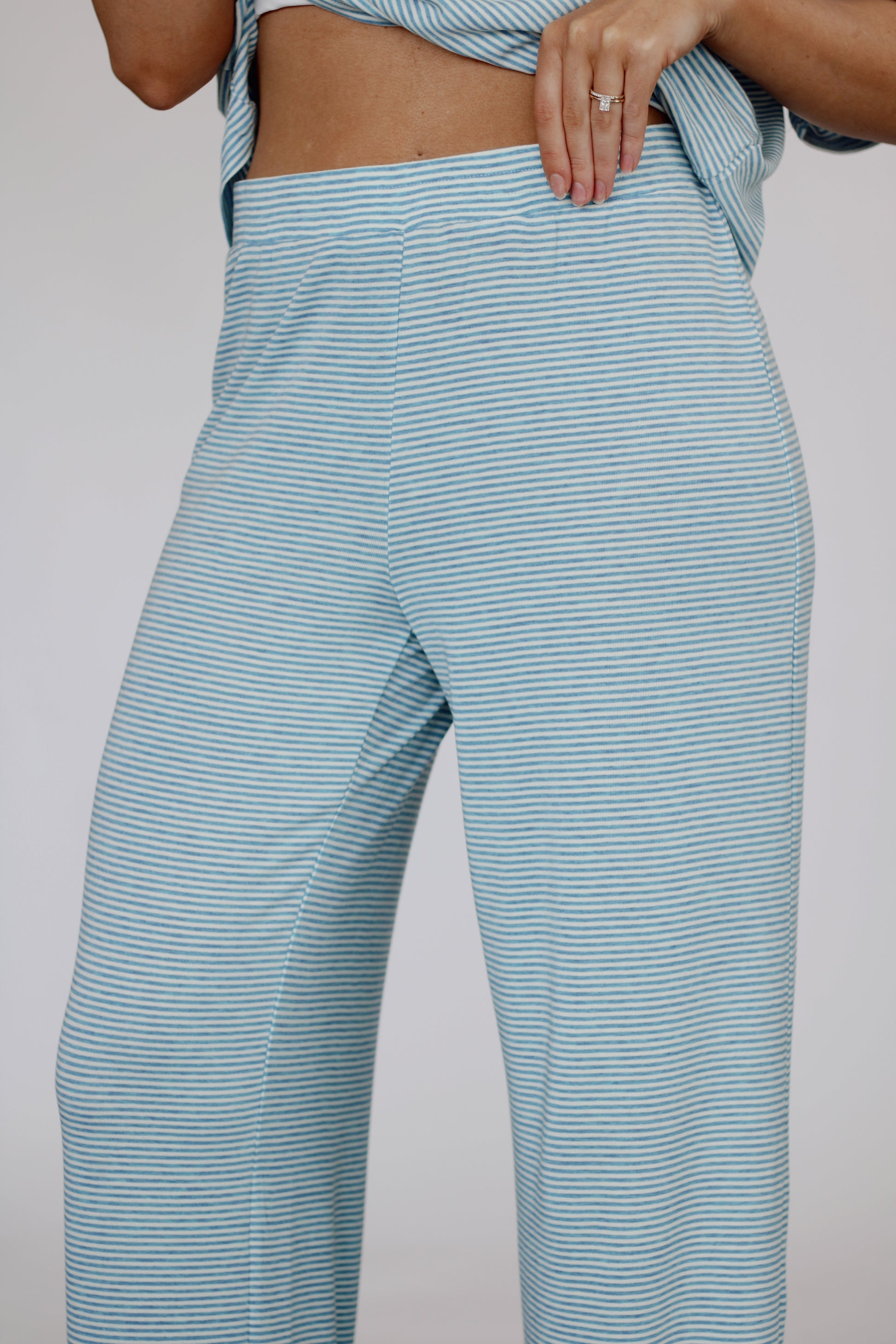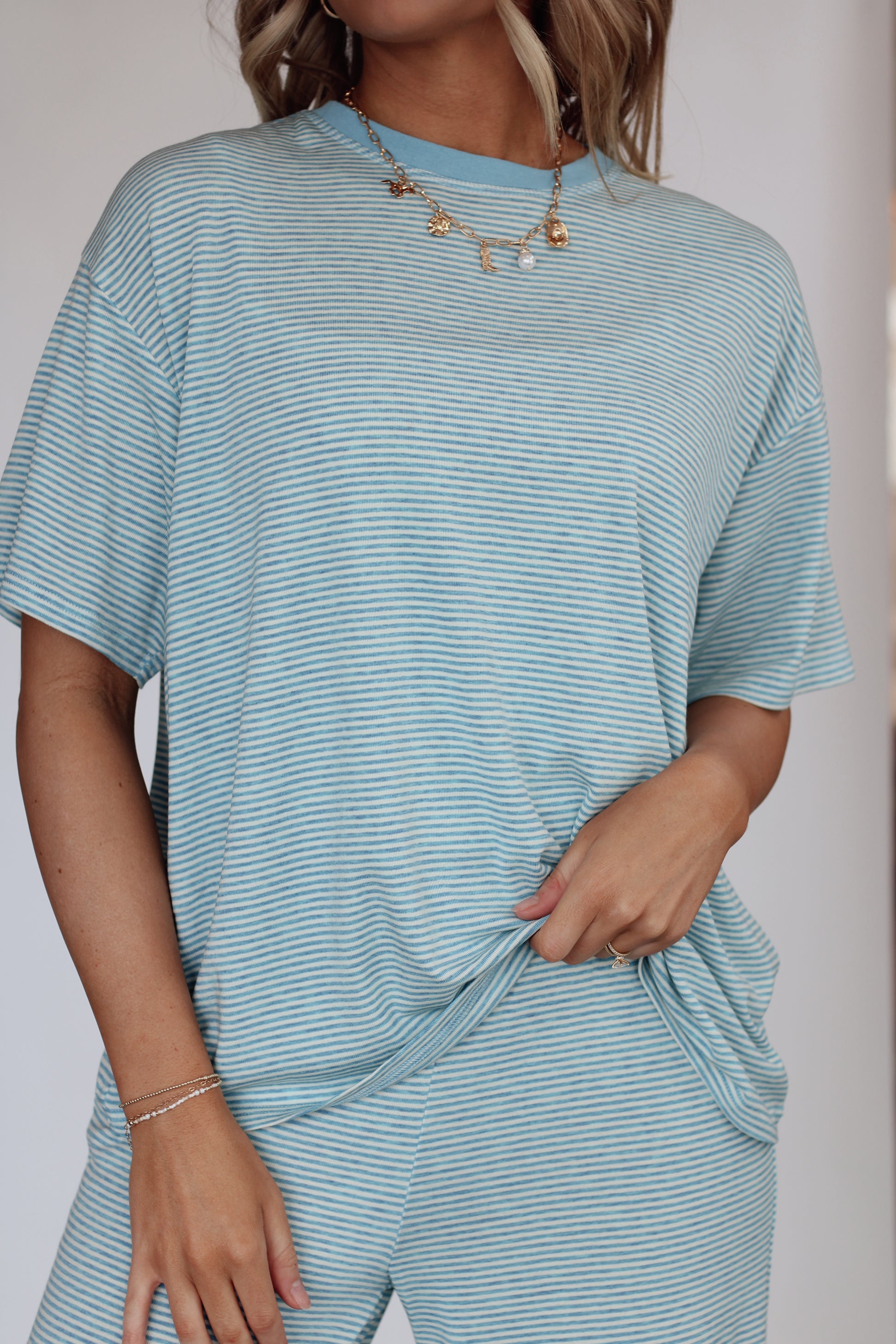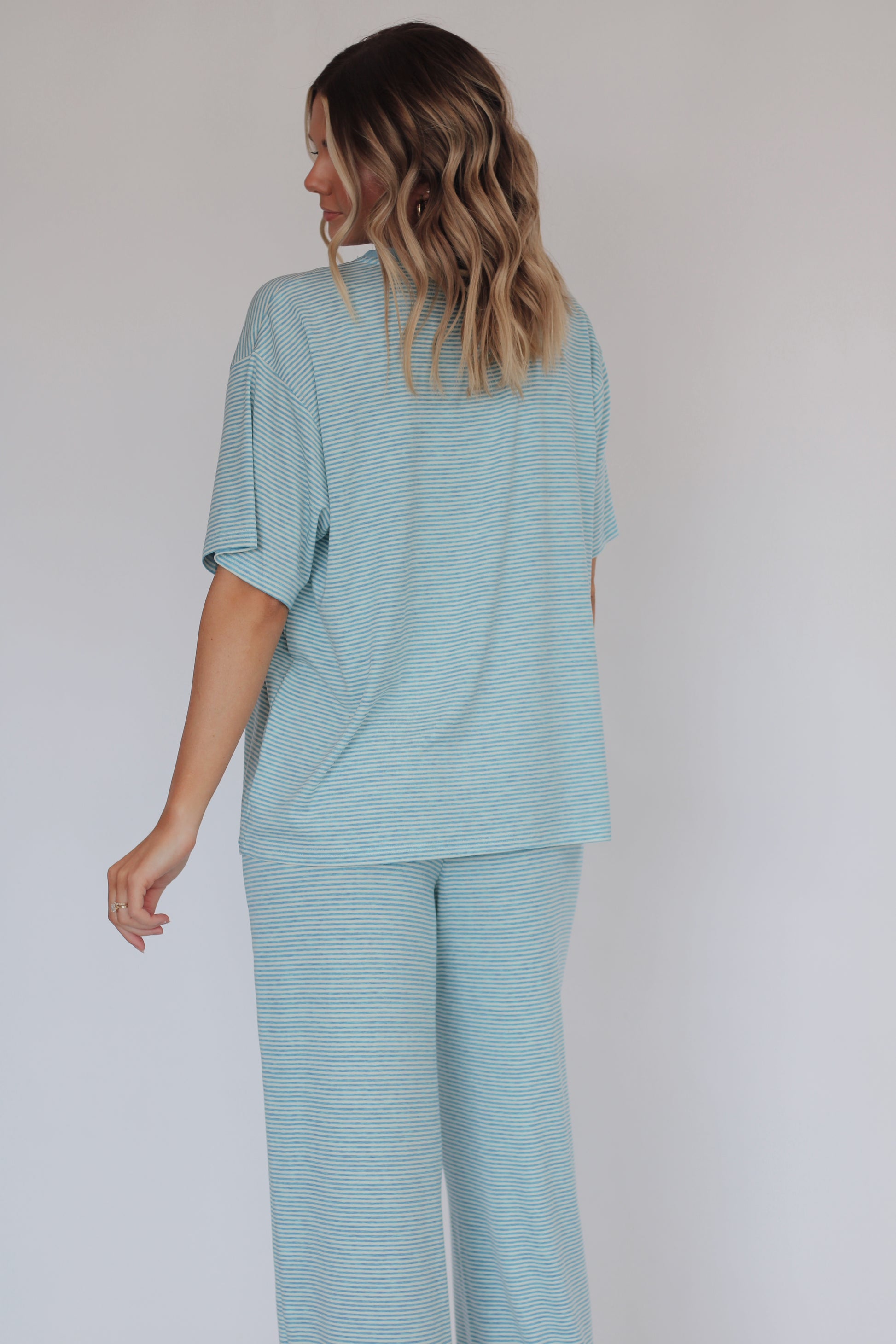 Our "Cloud Nine" Set features mini striped pants with an elastic waistband and a matching oversized tee. Very light weight!