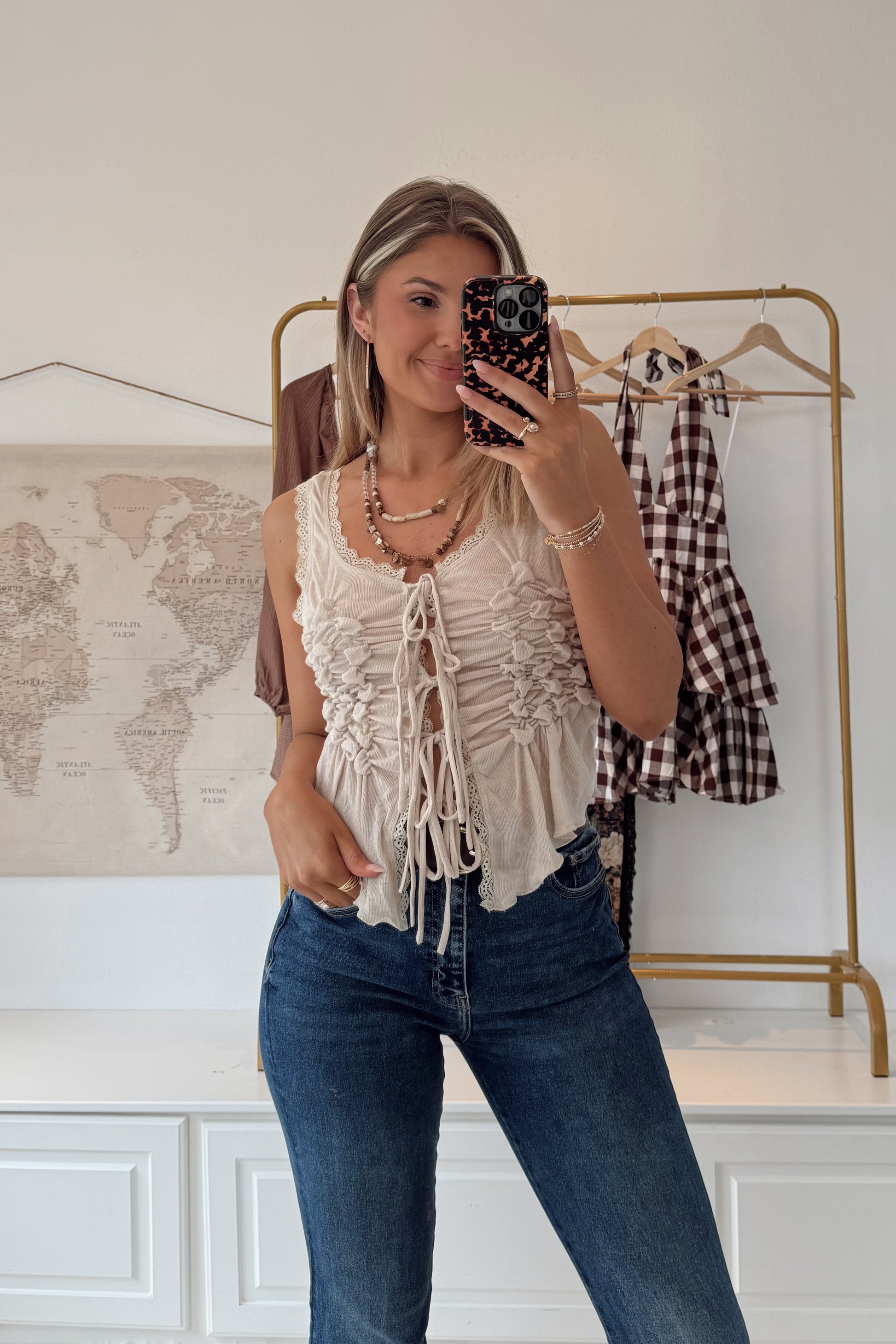 Desert Drift Front Tie Tank- Beige