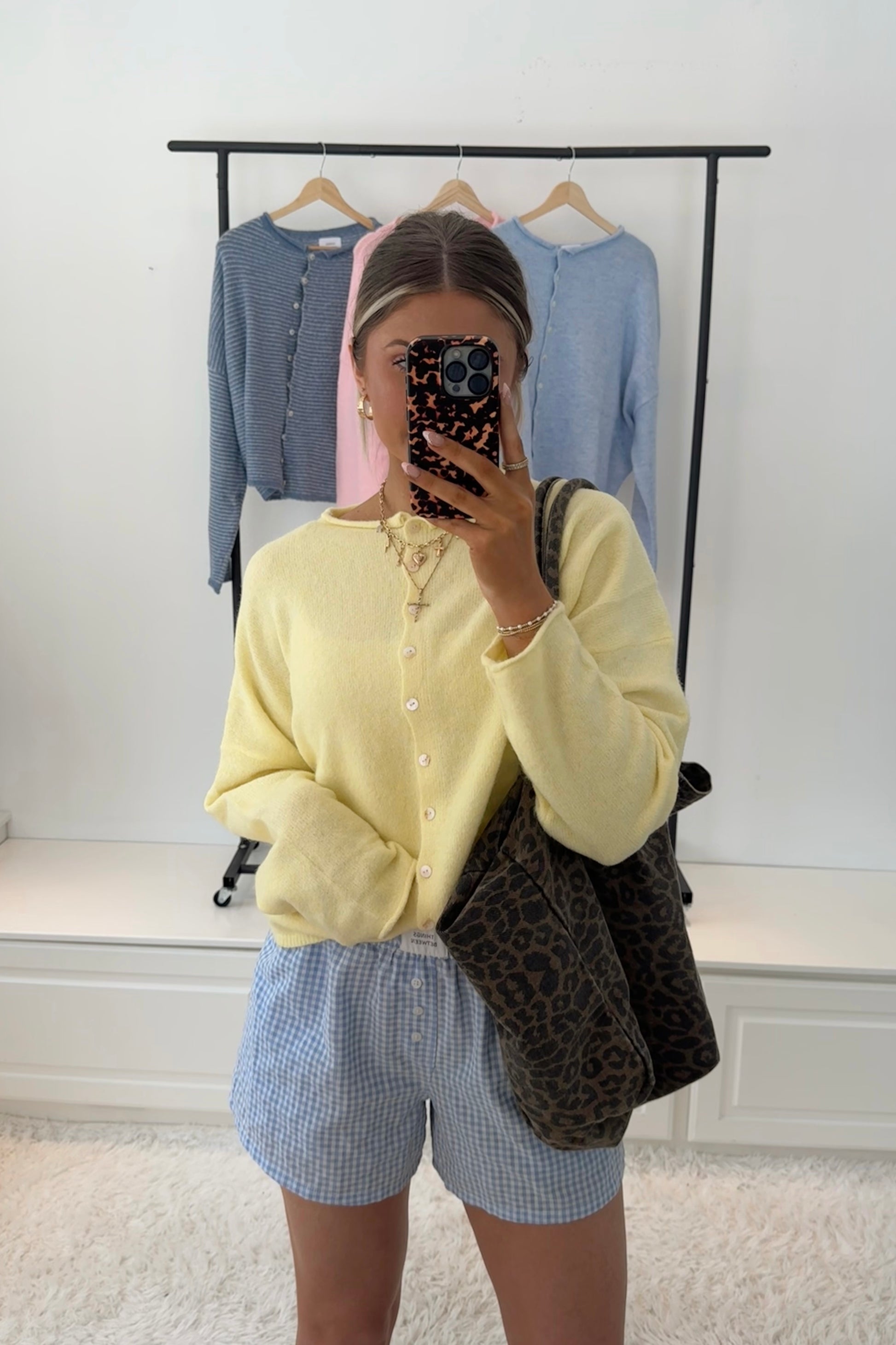 Our "Haven Cardigan" features a lightweight super soft material, front buttons, and a slightly oversized fit.